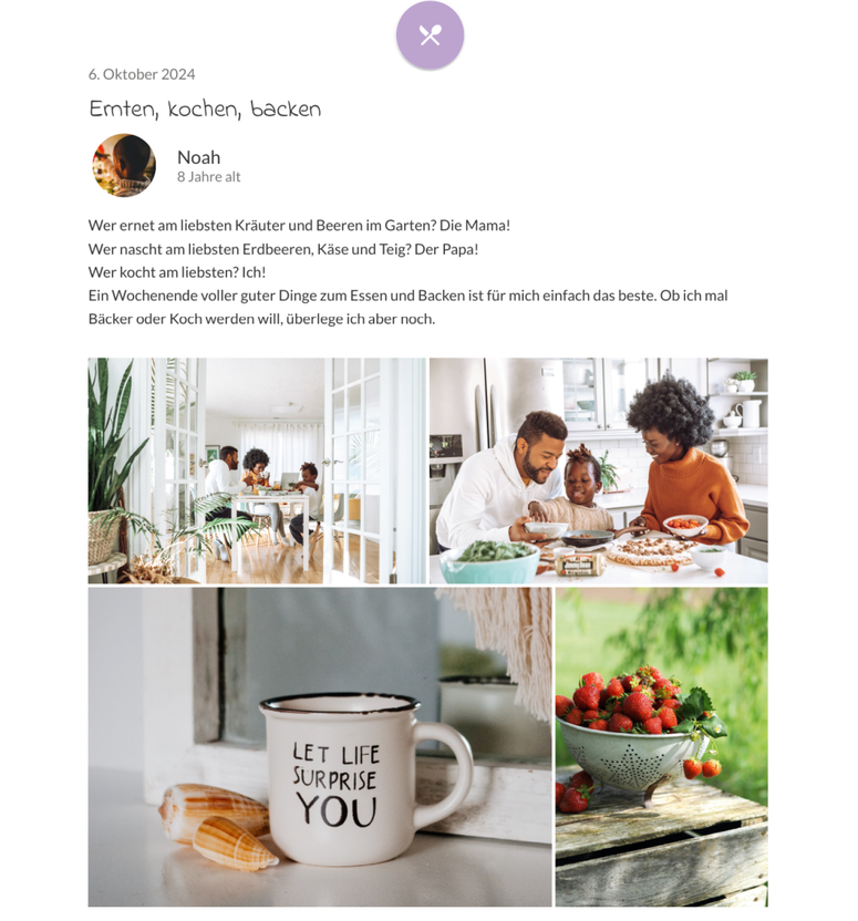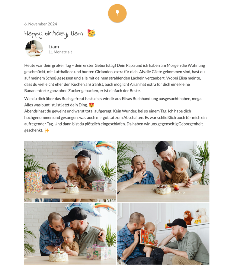 - Ordne deinem Tagebucheintrag einer Person, einem Event oder deinem Kind zu. Du kannst sogar das Alter angeben. Übernimm diese "Avatare" ins eBook. So sieht es besonders persönlich aus.